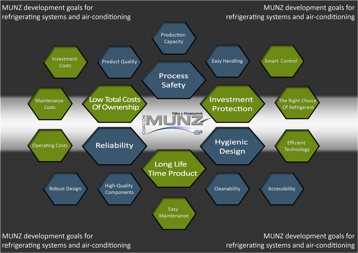 Munz GmbH is a medium sized enterprise specialized on cooling and air-conditioning. Founded in 1983 we look back on more than 25 years of business activities. Located in the metropolitan area Stuttgart we offer our German and international customers´ innovative high-quality system solutions in the sector of commercial and industrial cooling and air-conditioning.