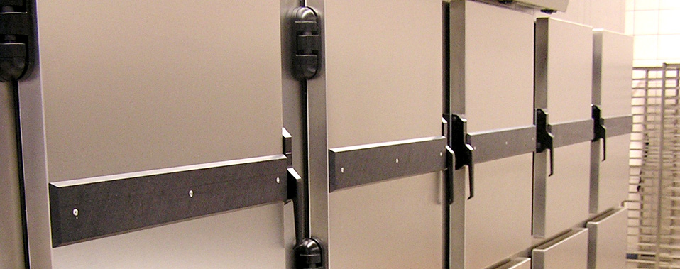 Hatch units are very useful for small and medium sized bakeries and especially for confectionary facilities. They provide high storage capacity at small footprint and can be loaded from outside. The loss of cold by opening a hatch is minimal compared to opening a door of an accessible chilling or freezing unit. Energy and operational costs can be saved. In addition the operator does not need to enter the unit for loading or unloading. So permanent change of temperature can be avoided, what benefits health.
