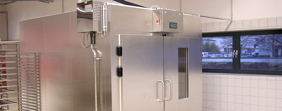 Abhängig von den Betriebsabläufen und Produktionsprozessen ist die richtige Auslegung der Rückholzellen wesentlich für die Qualität der Backwaren. In den vergangenen Jahren hat eine Entwicklung hin zu immer flacheren Prozesskurven stattgefunden. Heute werden die meisten Prozesse zur Gärverzögerung im Temperaturbereich bis circa -2°C gefahren. Stark reduzierte Hefemengen und niedrige Gärtemperaturen in Kombination mit deutlich verlängerten Prozesszeiten in der Auftauphase führen bei klassischen Weizen- und Roggenteigen zu hervorragender enzymatischer Geschmacksentwicklung und verbessern die Feuchtehaltefähigkeit der Kleberstruktur. Die Endtemperaturen der Prozesse liegen heute selten über +28°C. Diese Art der Prozessführung erlaubt es im Vergleich zu früher geringere Kälteleistungen zu installieren und senkt damit die Investitions- und Betriebskosten der Anlagen. Aber keine Regel ohne Ausnahme! Laugengebäcke z.B. fordern weiterhin eine starke Maschinenauslegung verbunden mit höheren Luftgeschwindigkeiten, um in kurzer Zeit eine stabile Hautbildung auf den Laugen-Teiglingen zu realisieren. Eine großzügige Verdampferauslegung mit kleinen Temperaturdifferenzen zwischen Verdampfer und Ware und die damit verbundene erhöhte relative Luftfeuchtigkeit ermöglicht bis hin zu Auftau-Temperaturen von circa +15°C auf eine externe Zusatzbefeuchtung zu verzichten. Bedingung ist, daß nicht zu viel TK-Ware in die Anlage eingebracht wird. Soll die Anlage auch als vollwertiger Gärraum verwendet werden, so wird die Heizleistung angepasst und ein externer Heizdampf-Luftbefeuchter mit eingebaut. Die vielen Möglichkeiten der Prozessführung erfordern eine individuelle Auslegung.