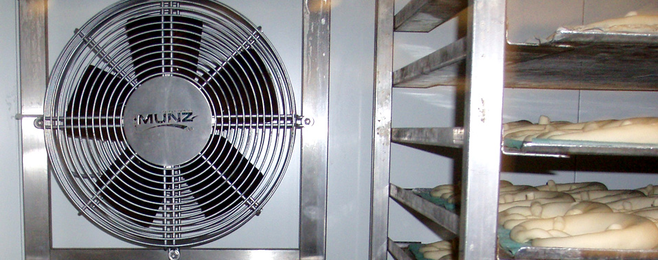 In der Lebensmitteltechnik spielt „Schockgefrieren“ eine wesentliche Rolle in vielen Konservierungs- und Produktionsprozessen. Munz bietet für verschiedenste Produkte und Produktionsprozesse die passende Schockfrost-Technologie. Befahrbare Anlagen für Stikkenwagen im Tunnelsystem für höchste Stundenleistung mit Standverdampfer. Anlagen mit Stellplatzsystem für hohe Flexibilität. Im Stellplatzsystem können Produkte mit unterschiedlichen Gefrierzeiten auf Stikkenwagen in einem Raum gemeinsam schockgefrostet werden. Je nach Anforderung kommen Deckenverdampfer -MSD-Anlage- oder Standverdampfer - MSS-Anlage- zum Einsatz. Munz Schnellkühler und Schockfroster garantieren eine gleichmäßig hohe Produktqualität und entlasten das nachgeschaltete Tiefkühllager. Die exakten Konditionierbedingungen wie Lufttemperatur, relative Luftfeuchtigkeit und Luftgeschwindigkeit werden individuell auf das Produkt abgestimmt.